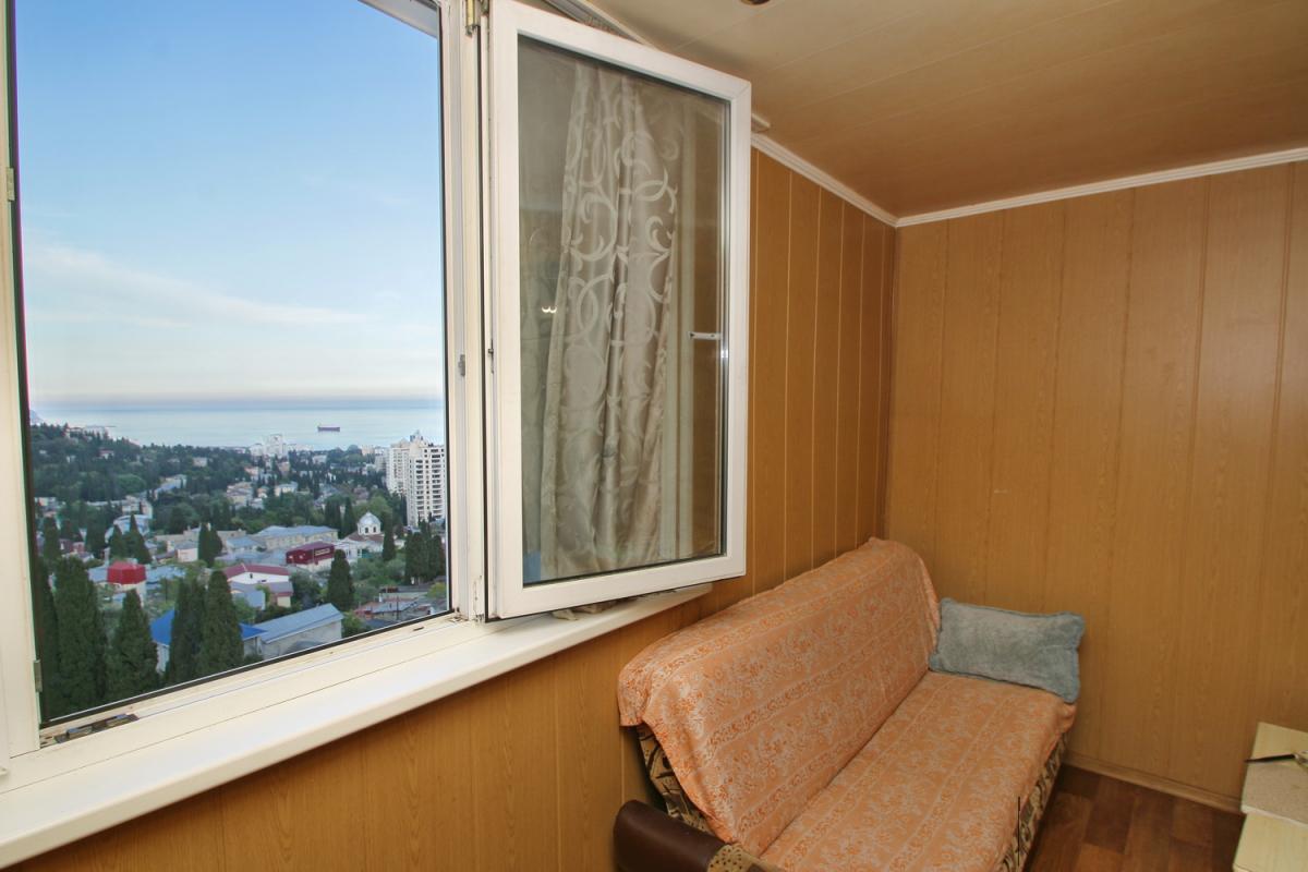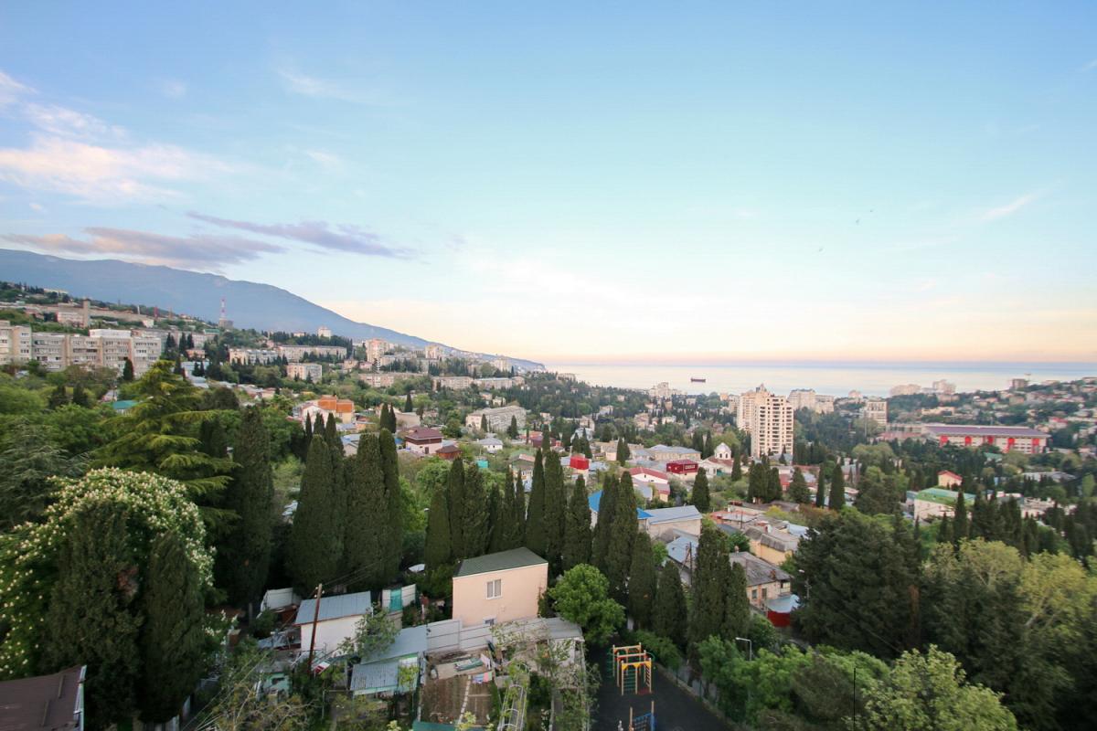 Из окон открывается красивый панорамный вид на море, горы и город, что делает квартиру особенно привлекательной для проживания в Ялте.