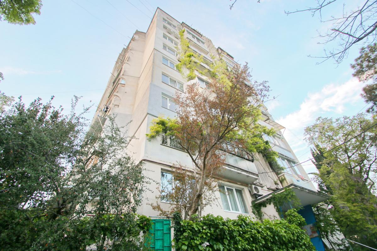 Продаётся 2-комнатная квартира с панорамным видом на море и горы в Ялте, расположенная в одном из зелёных и спокойных районов города — рядом с Дом‑музей Антона Чехова.